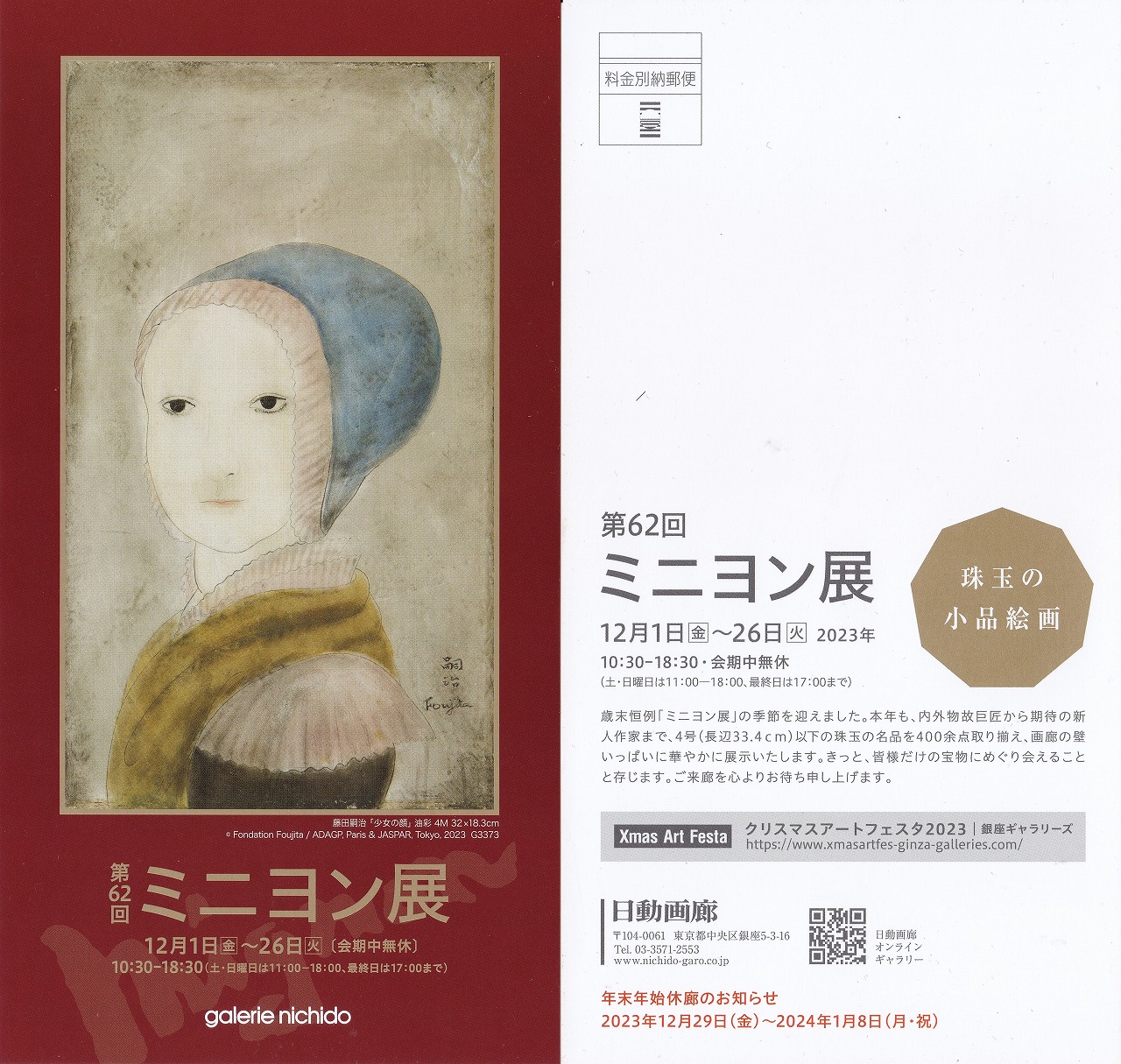 12月の銀座、日動画廊恒例の風物詩で小品が多数展示されています。